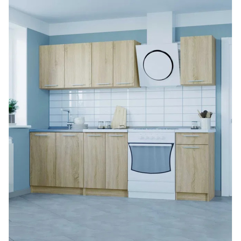 Модульна кухня "Ніка" від виробника Mebel-Star - це витончене рішення із привабливим зовнішнім виглядом. Секційна структура захоплює своєю гнучкістю та опцією індивідуального вибору елементів. Міцний каркас і фасад кухні виготовлені з ламінованої ДСП. Кухня виконана в стилі мінімалізму і має пряму конфігурацію. Чудово доповнить простір з будь-яким інтер'єром. Характеризується стриманим виглядом та якісною фурнітурою, яка прослужить багато років.