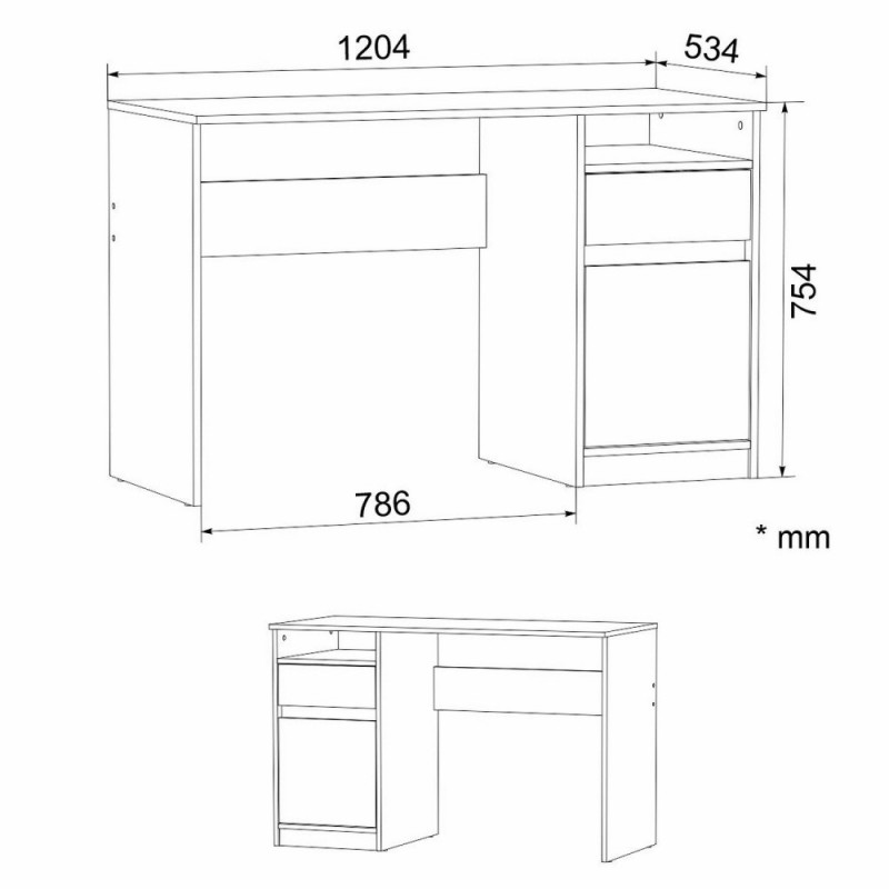 Вільний простір між лівою бічною стінкою столу та тумбою дозволяє зручно розмістити ноги при сидінні на стільці або в кріслі і навіть встановити системний блок, якщо на стільниці передбачається встановити монітор та клавіатуру комп'ютера.