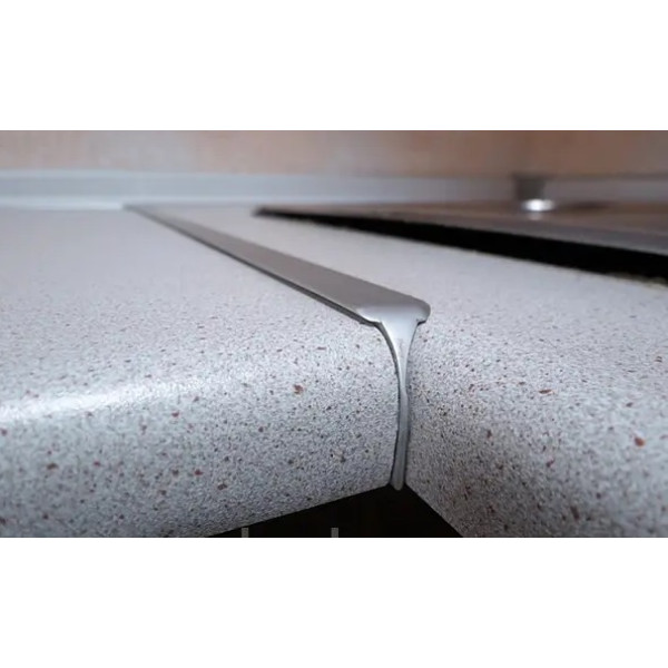Стикова планка на кут служить для створення з'єднання стільниць кутової кухні. Виготовляється із алюмінію. Залежно від товщини стільниці 28 мм або 38 мм потрібно вибирати і планку стику.