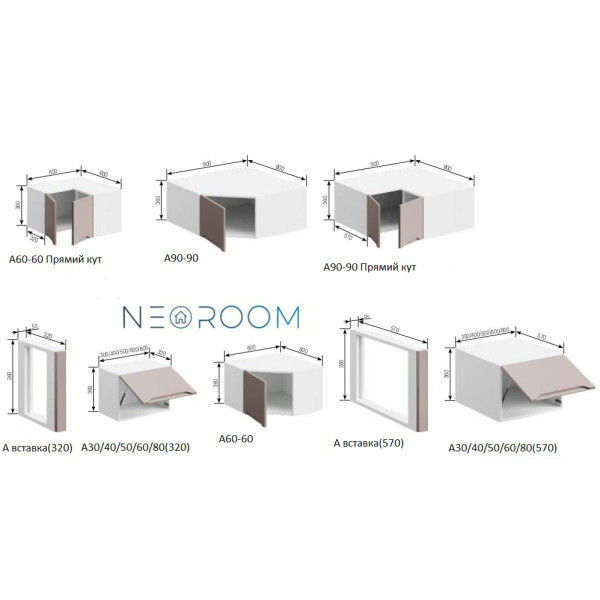 А90-90 Прямий кут -це кутова антресоль кухні Мілана.