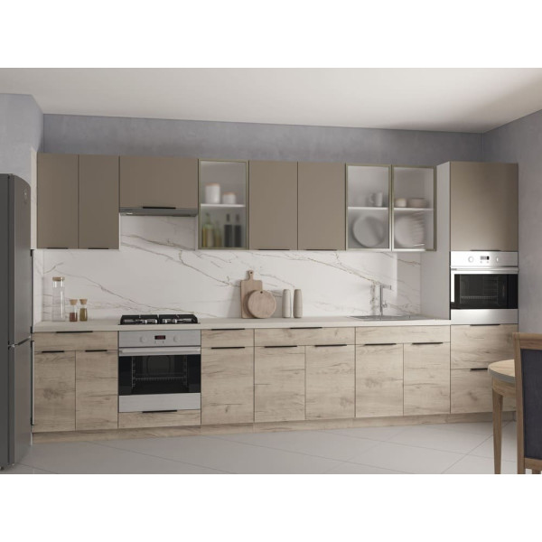 Так як кухня Аліса - це модульна кухня, представлена окремими модулями, то ящики верхнього і нижнього ярусу, а так само антресолі можна набрати з урахуванням розмірів Вашого приміщення.