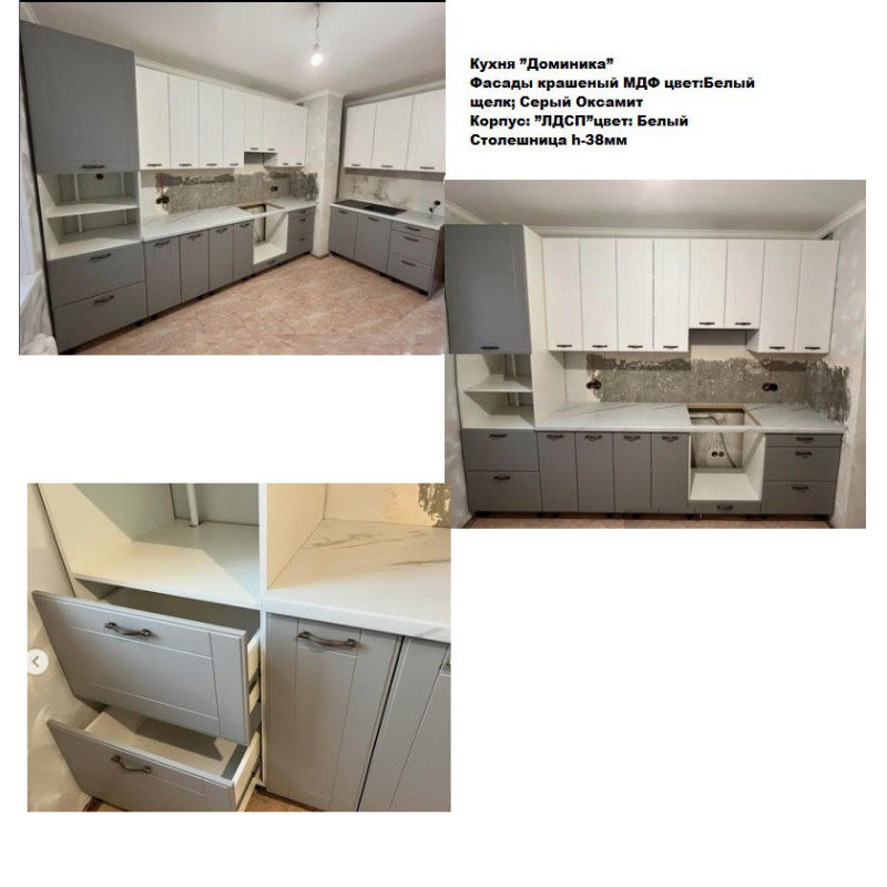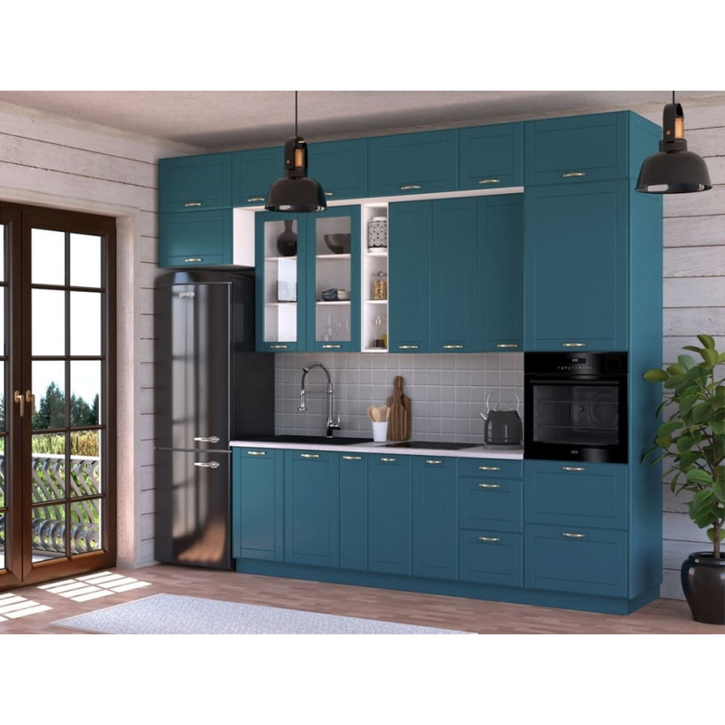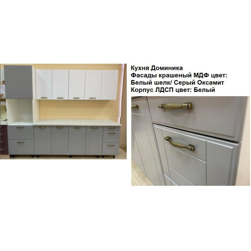 Оскільки кухня Домініка - це модульна кухня, представлена окремими модулями, то ящики верхнього та нижнього ярусу можна набрати з урахуванням розмірів Вашого приміщення.