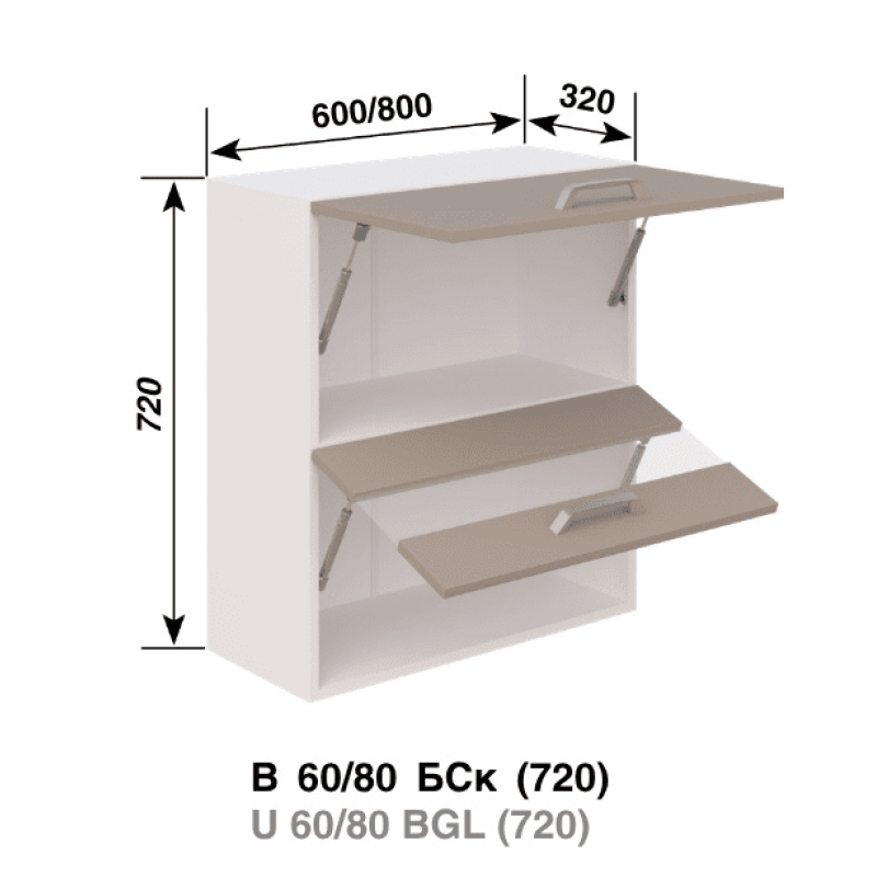 В60Б Ск – це секція кухні Марта зі скляним фасадом та шириною 600 мм. Для кріплення секції до стіни потрібна монтажна шина. На вибір комплектується пластиковою чи металевою ручкою.