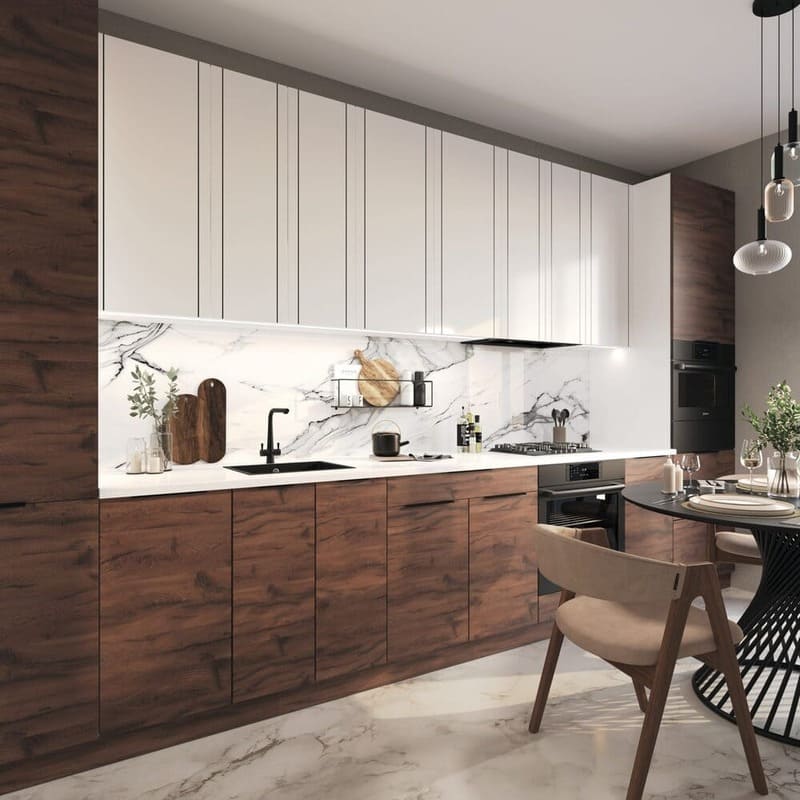 Естетика: Лакове покриття надає кухні глянсового блиску, а лаконічні смуги додають динаміки сучасному інтер'єру.