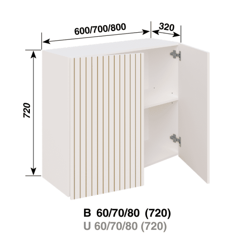 Концепція: Фасади «Смужка» розроблені виключно для верхніх секцій. Вони комбінуються зі стандартними нижніми модулями інших колекцій фабрики (наприклад, "Софі" або "Графіті").