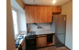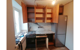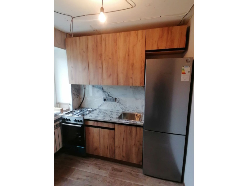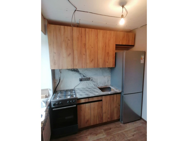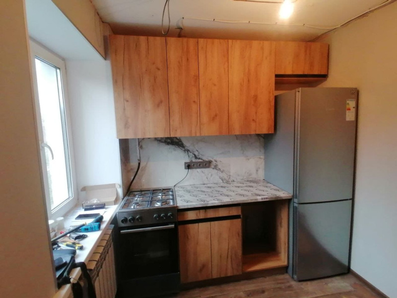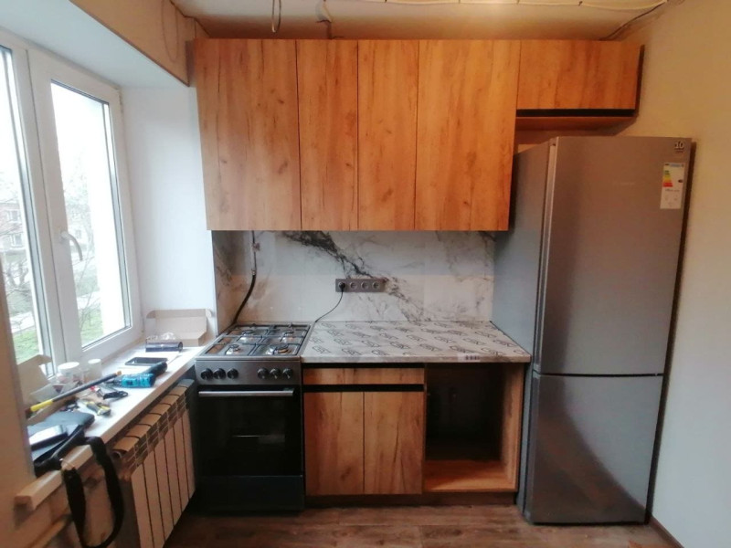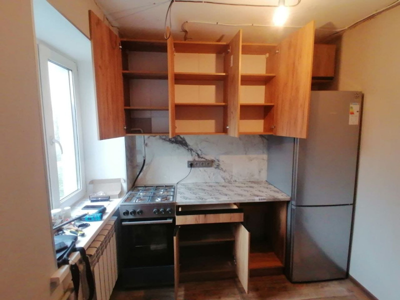 Складання кухні Софі в кольорі дуб крафт золотий. Навіска верхніх секцій. Врізання мийки.