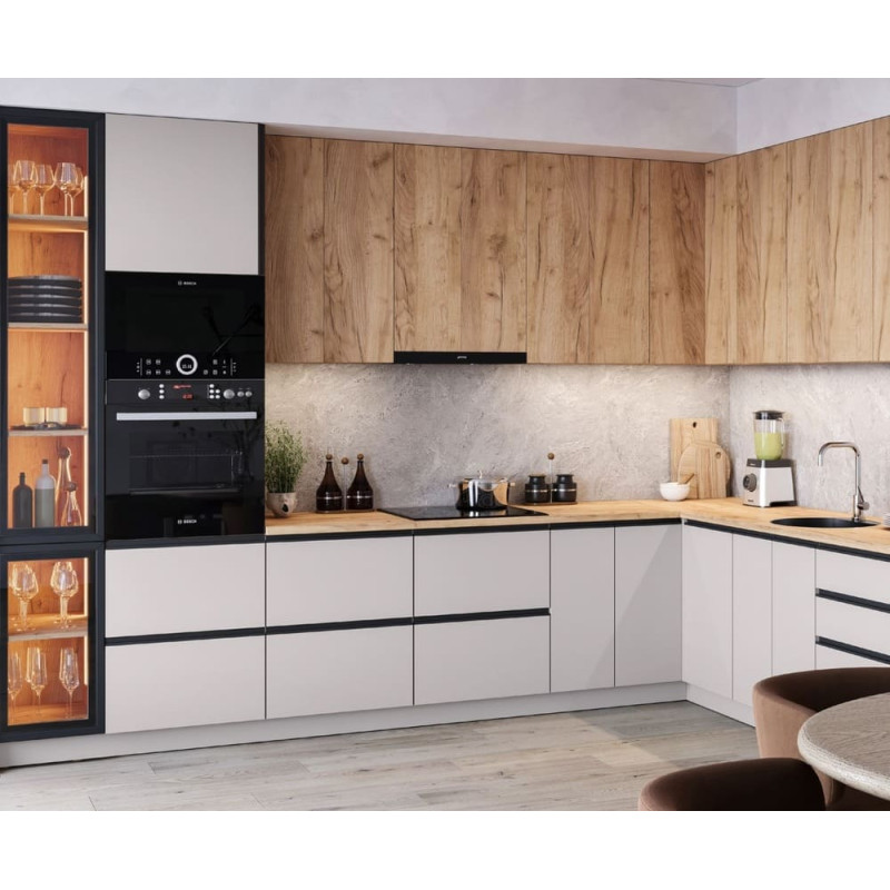 Кухня Софі привертає увагу:- одночасним застосуванням двох варіантів відкривання: за допомогою фрезе..