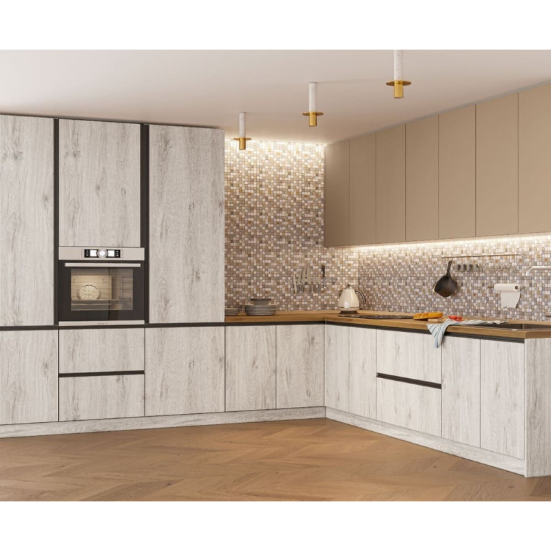Оскільки кухня Софі - це модульна кухня, представлена окремими модулями, то ящики верхнього та нижнього ярусу можна набрати з урахуванням розмірів Вашого приміщення.