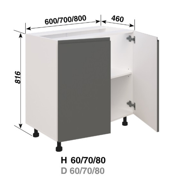 Секція кухні Влада Н70 - це нижня секція шириною 700 мм з двома дверцятами. Встановлюється на регульовані ніжки заввишки 100 мм. Можливе встановлення на ніжки висотою 150 мм.