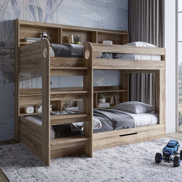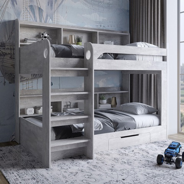Високі захисні борти на верхньому ярусі забезпечують безпеку дитини під час сну. Стильний дизайн гармонійно впишеться в інтер'єр дитячої сучасної кімнати.