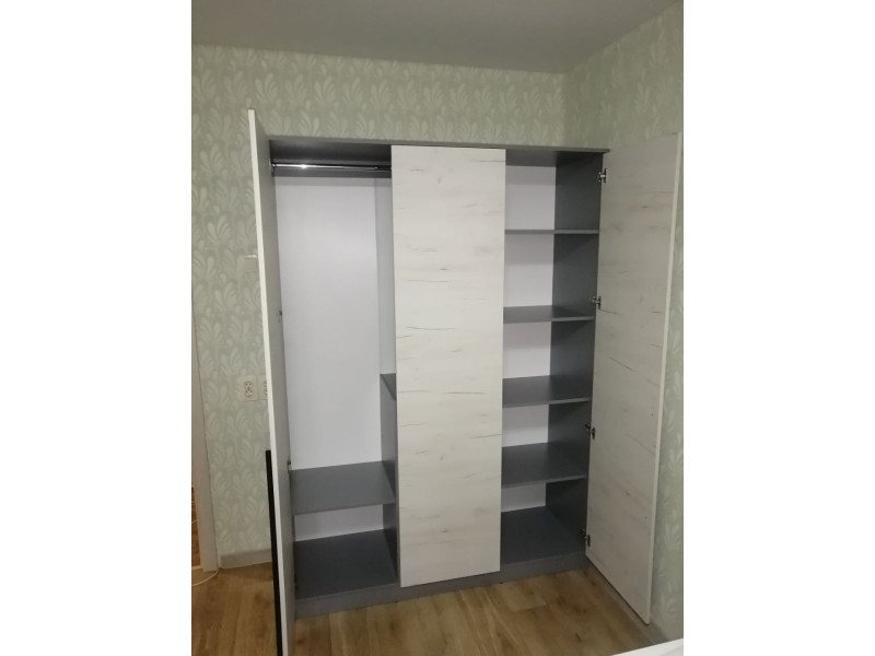 Шафа "Кенон" від української фабрики "Модерн" - це сучасна розстібна модель, виконана з ламінованого ДСП товщиною 16 мм. Процес складання стандартний для корпусних меблів цього типу і вимагає базового набору інструментів