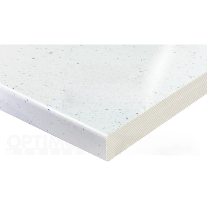 Водостійка стільниця Андромеда біла від української фабрики Меблі Стар (Mebel Star) - це практичний елемент кухонного інтер'єру, виготовлений на базі декору K217 GG/GM (виробництва Kronospan). Вона є плитою, покритою міцним захисним шаром, який імітує текстуру білого каменю з вкрапленнями мерехтливих частинок.