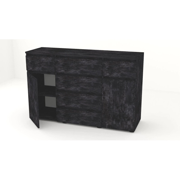 Дана модель оснащена чотирма висувними ящиками та двома дверцятами.